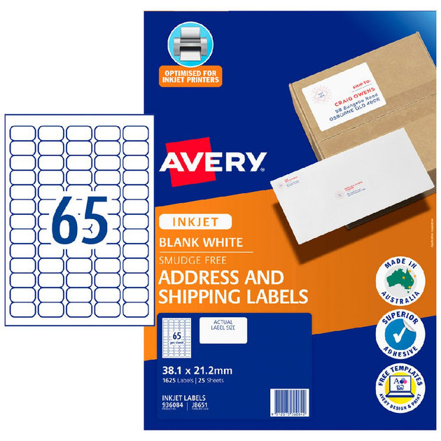 AV InkjetLabel J8651 65UP Pk25